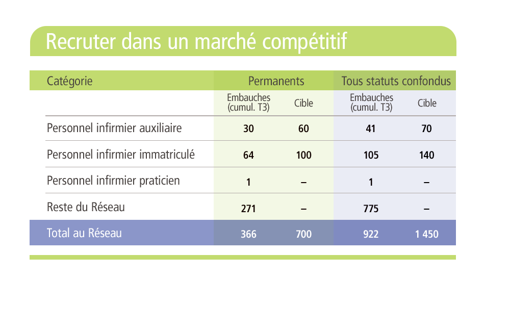 Le Réseau affiche maintenant des résultats remarquables sur le plan de la stabilité de sa main‑d’œuvre, soit :