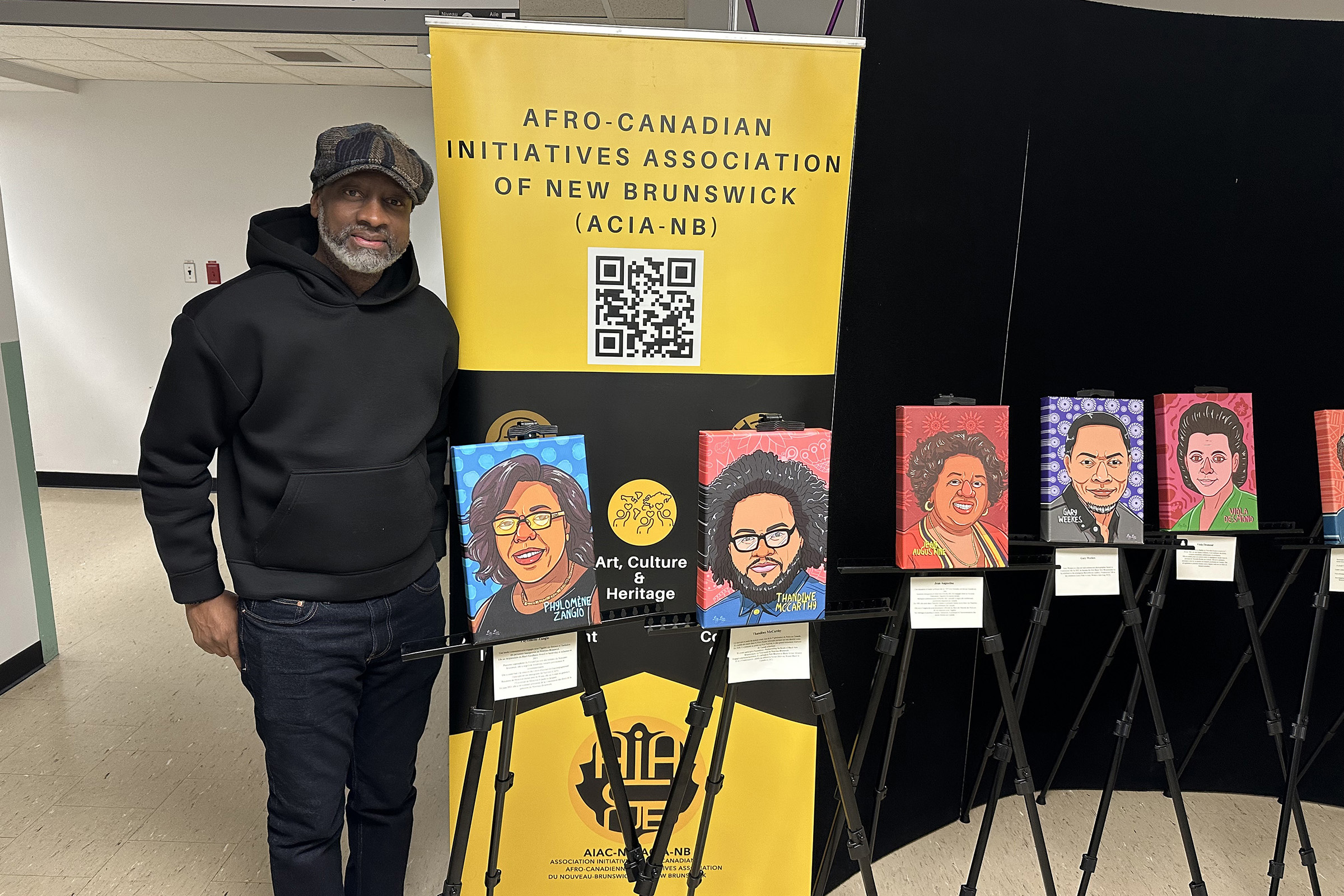 À l’occasion du 30e anniversaire du Mois de l’histoire des Noirs, le Réseau de santé Vitalité a accueilli une exposition de portraits de personnes noires et afrodescendantes du Nouveau-Brunswick, créés par l’artiste Norelice Mboutou, en collaboration avec l’Association Initiatives Afro-Canadiennes du Nouveau-Brunswick.
